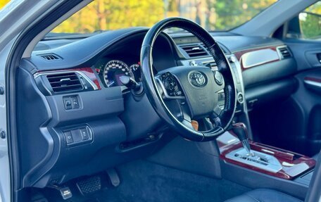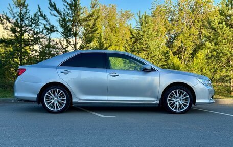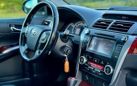 Продам чёрную Toyota Camry 2,5 2014 года выпуска в отличном состоянии для своих лет. Это хозяйский автомобиль. Он обслуживался по регламенту (есть заказ-наряды), вложений не требует. Двигатель и АКПП работают как часы (идеально). Вс...
